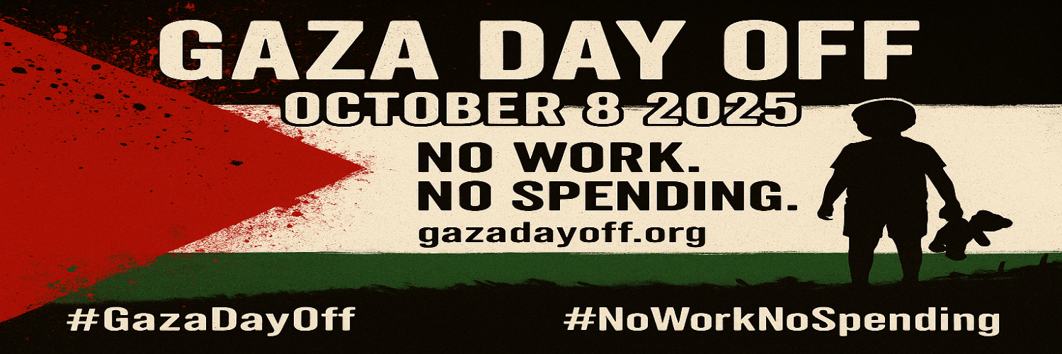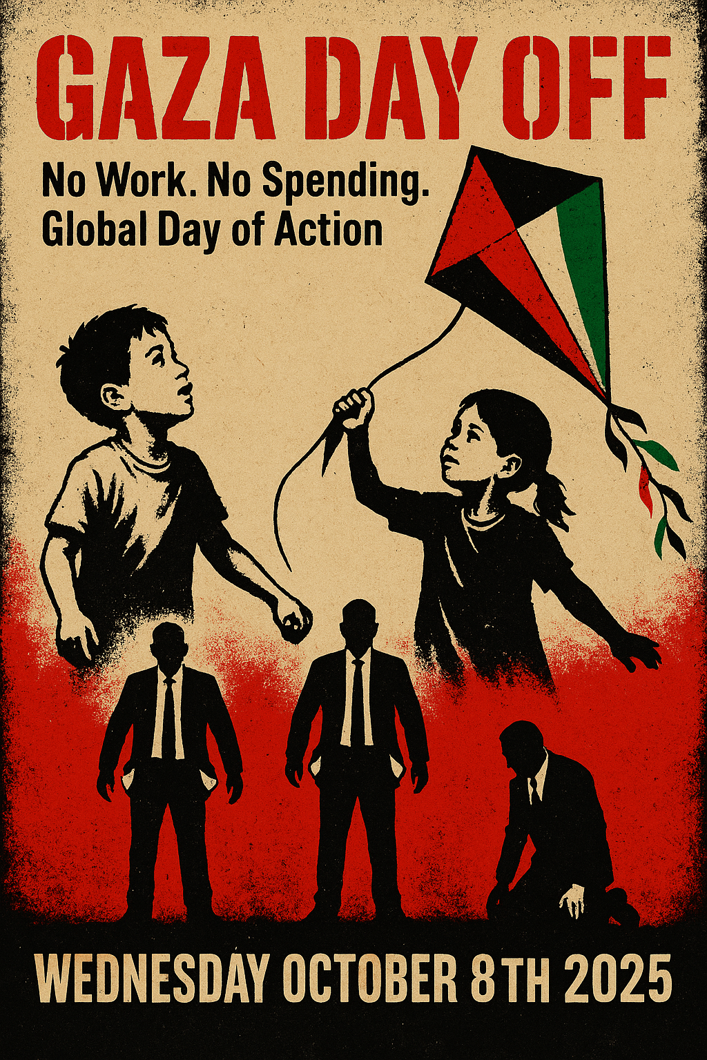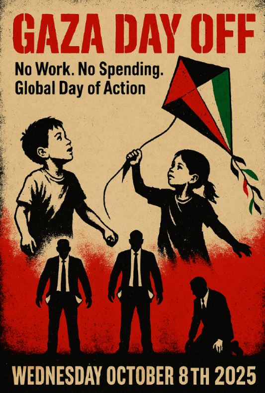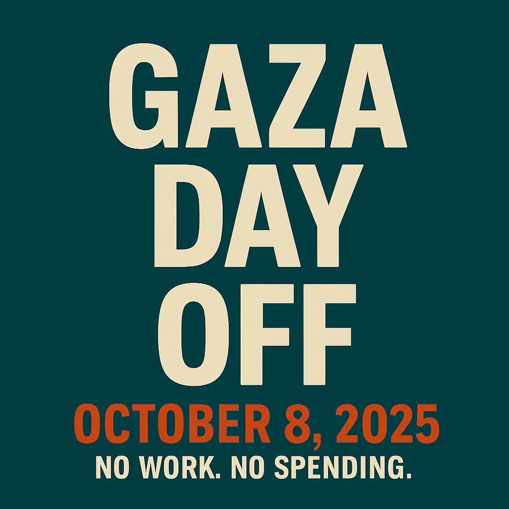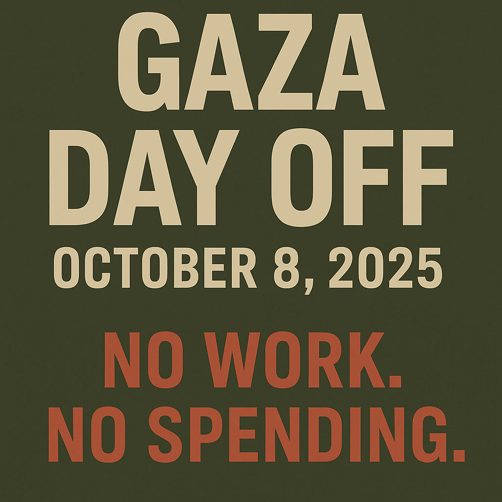 - Tell 3 friends. Post: “Gaza Day Off — Oct 8: No Work. No Spending.”